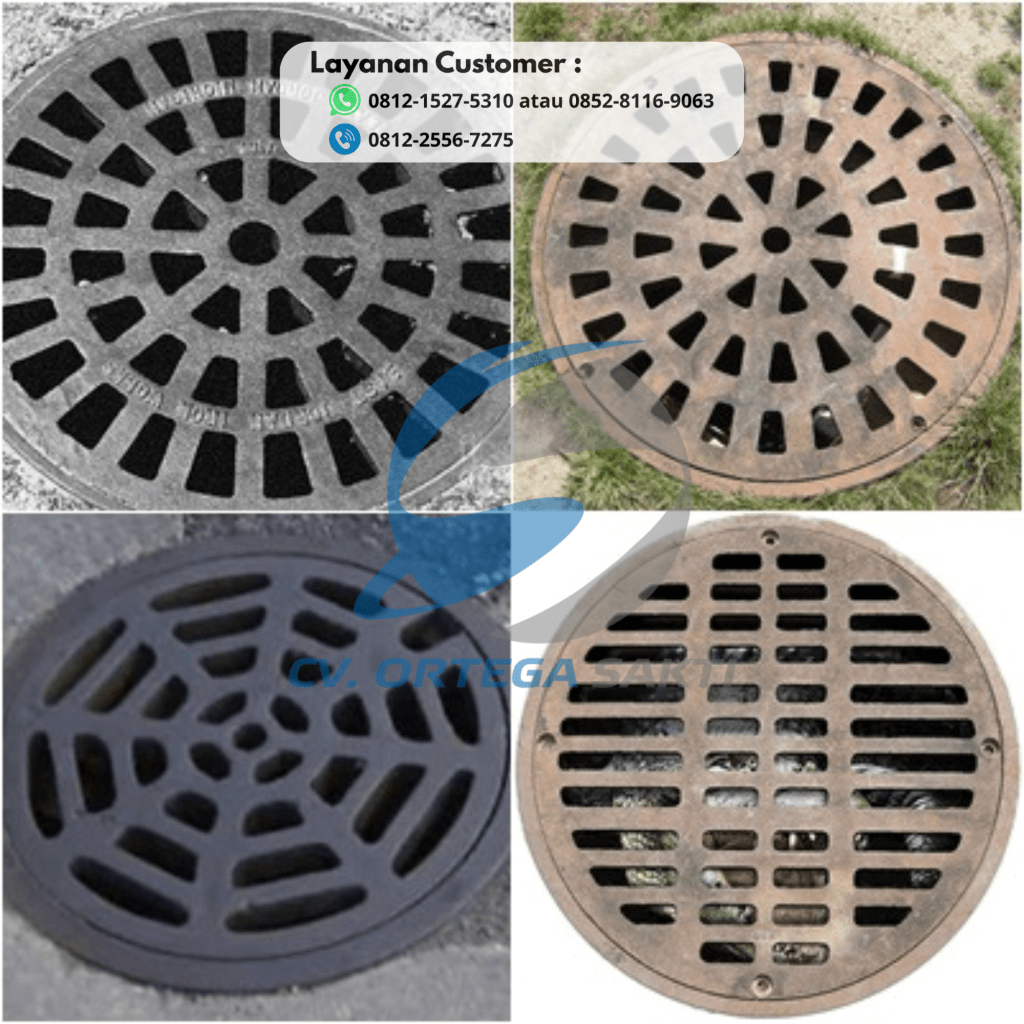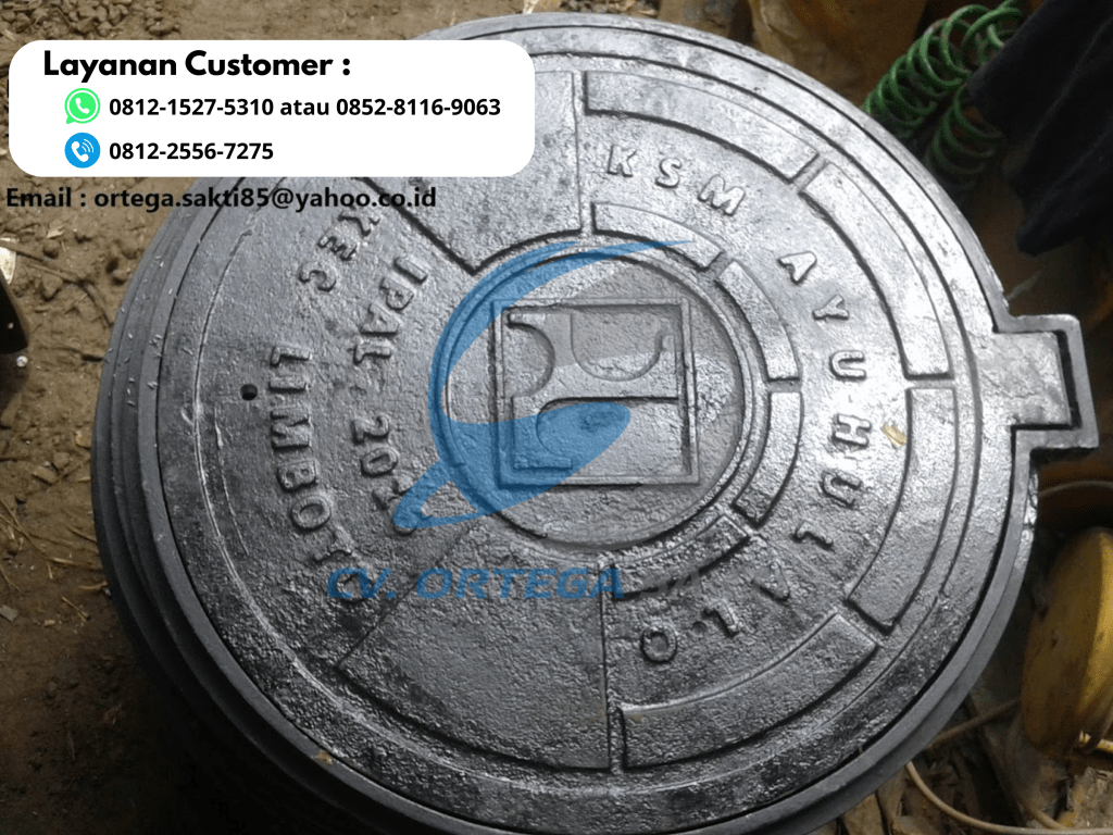 Bahan dari tutup saluran ini adalah besi tuang cast iron.